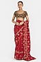 Bright Red Silk Chanderi Sequins Embroidered Saree Set