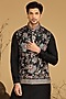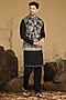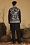 Featuring a black bundi jacket in silk base. It is paired with a kurta and aligarhi pants. Perfect wear for festive occasions.