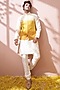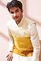 Featuring a cream and yellow ombre bundi jacket in pure silk base with mirror and thread embroidery. It is paired with a lucknowi kurta having sequin embellishments and blended silk churidar pants. Perfect wear for a wedding, haldi or engagement ceremony.