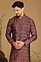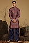 Featuring a maroon kurta in silk base. It is paired with navy dhoti pants. Perfect wear for festive occasions.