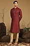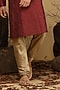 Featuring a maroon kurta in silk base. It is paired with churidar pants. Perfect wear for festive occasions.