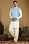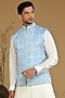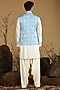 Featuring a sky blue bundi jacket in silk base. It is paired with a kurta and salwar pants. Perfect wear for festive occasions.