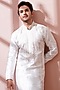 White Silk Thread Embroidered Kurta Set