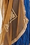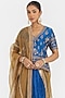 Featuring a chelsea blue choli in silk chanderi base with a curved v-neckline, side zip, gota piping detail, dori, sequins and bead embroidery. It is paired with a forty kali lehenga having gota embroidery, including an olive silk organza dupatta. Style it with statement jewellery and heels for a sangeet, wedding or engagement ceremony.