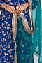 Featuring a chelsea blue kurta in silk chanderi base with 3/4 sleeves, gota piping, floral boota, sequins, beadwork and dori jaal embroidery. It is paired with olive silk chanderi crushed pants and a purple silk organza dupatta. Style it with dangler earrings and heels for a festive occasion, wedding or engagement ceremony.