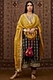 Featuring a dark grey kurta in silk velvet base with gota and zari embroidery. It is paired with contrasting salwar pants and a tissue chanderi dupatta.