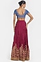 Featuring a chelsea blue choli in silk chanderi base with a deep round neckline, side zip, gota piping detail, dori, sequins and bead embroidery. It is paired with a deep fuchsia forty kali lehenga having gota embroidery, including an olive silk organza dupatta. Style it with statement jewellery and heels for a sangeet, wedding or engagement ceremony.
