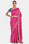 Fuchsia Silk Chanderi Sequins Embroidered Saree Set