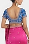 Featuring a fuchsia saree in silk chanderi base with gota piping detail, beads, sequins and dori boota embroidery. It is paired with a chelsea blue embroidered blouse having side zip and a deep round neckline. Style it with a choker necklace set and heels for a festive occasion, wedding or engagement ceremony.