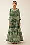 Featuring a green multi-tiered kurta in cotton chanderi base with hand block print, beads, sequins and tassels work. It is paired with matching printed cotton pants having side pockets and an elasticated waistband, including a silk chanderi dupatta and a cotton slip.