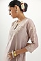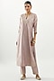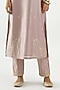 Featuring a lilac straight kurta in silk chanderi base with boota, gota flowers, gota lace, and zari embroidery. It is paired with matching cotton straight pants and an organza dupatta.