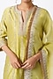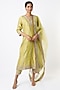 Featuring a lime green straight kurta in silk chanderi base with gold gota and zari embroidery. It is paired with matching cotton salwar pants and a silk organza dupatta.