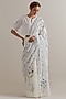 Off-White Cotton Chanderi Floral Hand Block Printed Saree Set
