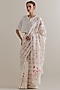 Off-White Cotton Chanderi Floral Hand Block Printed Saree Set