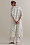 Featuring an off-white kurta in cotton chanderi base with hand block print. It is paired with a cotton slip, straight pants and a cotton chanderi dupatta. Accentuate it with statement earrings and block heels for a festive occasion, wedding or engagement ceremony.
