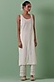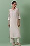 Off-White Cotton Chanderi Mirror Work Straight Kurta Set