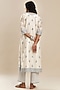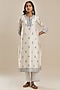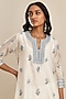Featuring an off-white kurta in silk chanderi base with beads embroidery. It is paired with matching straight pants with quilted embroidery, a cotton slip and a contrasting dupatta with white beads finishing.