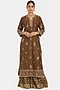 Featuring an olive green straight kurta in silk chanderi base with a side slit, dori, sequins and beads embroidery. It is paired with crushed sharara pants. Style it with statement earrings, block heels with a sleek hair for a festive occasion, sangeet or engagement ceremony.