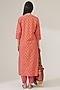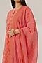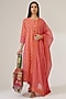 Featuring an orange and rose pink kurta in cotton base with hand block print and roll-up sleeves. It is paired with matching straight pants and a cotton chanderi dupatta having quilted embroidery.