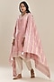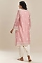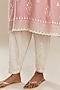 Featuring a pink short kurta in cotton chanderi base with off white silk thread, sequins, and beaded embroidery. It is paired with contrasting white cotton salwar pants, hand block printed dupatta, and a slip.