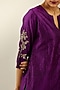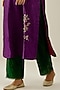 Featuring a plum purple hand-crushed straight kurta in silk base with zari and sequins work. It is paired with contrasting straight pants and a silk organza dupatta having sequins work and gota lace edgings.