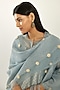 Featuring a powder blue straight kurta in silk chanderi base with hand block print and gota embroidery. It is paired with matching pants, a cotton slip and a silk organza dupatta having embroidery.