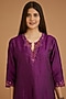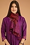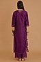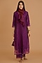 Featuring a purple kurta in silk and organza base with mirror cutwork hand embroidery. It is paired with matching hand block printed pants, a cotton camisole, and a maroon stole having fabric tassels.