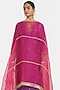 Featuring a purple straight kurta in silk chanderi base with a side slit, dori, sequins and beads embroidery. It is paired with narrow salwar pants and a silk organza dupatta. Style it with statement earrings, block heels with a sleek hair for a festive occasion, sangeet or engagement ceremony.