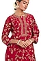 Featuring a red kurta in silk chanderi base with 3/4 sleeves, round neckline, gota piping, floral boota, sequins, beadwork and dori jaal embroidery. Style it with pants, dangler earrings and heels for a festive occasion, wedding or engagement ceremony.