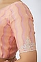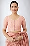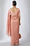 Featuring a salmon pink saree in chanderi silk base with mirror and silver zari floral embroidery. It is paired with a matching hand block printed blouse and a cotton petticoat
