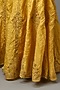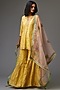 Featuring a yellow short kurta in hand crushed silk base with sequins, gota lace and zari handwork. It is paired with matching kalidar pants having sequins, zari, gota lace, drawstrings and an elasticated back, including a contrasting silk organza embroidered dupatta.