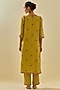 Featuring a yellow straight kurta in tissue chanderi base with gold zari, sequins, boota and hand-cut silk floral embroidery. It is paired with straight embroidered pants having pockets, sequins and bead work, including a fine cotton slip and a silk organza scalloped dupatta. Accentuate it with statement earrings and heels for a festive occasion or pooja ceremony.