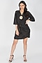 Featuring a black wrap dress in crepe base with a tulip hem and flared sleeves. This contains only one piece.
