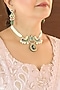 Featuring a gold finish handmade choker necklace studded with green kundan polki, set in brass. It is paired with a matching pair of earrings. This jewellery elevates weddings and festive looks, style it with embellished outfits and heels for a refined, glamorous finish.