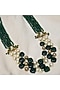 Featuring a handcrafted necklace studded with green stones, set in brass metal. Perfect wear for festive occasions or wedding ceremonies.
