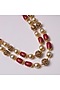 Featuring a red and gold necklace studded with beads, set in brass metal. The necklace is perfect for a festive or casual outing.