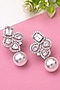 Featuring a pair of silver finish earrings studded with CZ and pearl drops, set in brass metal. These earrings are perfect for a festive or wedding ceremony.