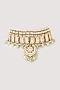 Featuring a gold finish choker necklace studded with kundan polki and green beads, set in brass. Perfect for a wedding or festive occasion.