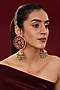 Featuring a pair of gold finish dangler earrings studded with kundan polki and green beads, set in brass. Perfect for a wedding or festive occasion.