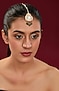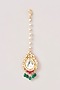 Featuring a gold finish maangtikka studded with kundan polki, multi-colored stones and green beads, set in brass. Perfect for a wedding or festive occasion.