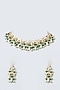 Gold Finish Kundan Polki & Green Beaded Necklace Set
