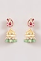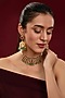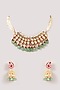 Featuring a gold finish necklace studded with kundan polki and green beads, set in brass. It is paired with a matching pair of earrings. Perfect for a wedding or festive occasion.