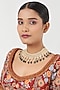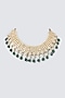 Featuring a gold finish necklace studded with kundan polki and green beads bunches, set in brass.