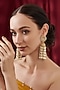 Featuring a pair of gold finish jhumka earrings studded with kundan polki and pearl beads, set in brass.