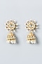 Featuring a gold finish necklace studded with kundan polki and pearl beads, set in brass. It is paired with a matching pair of jhumka earrings.