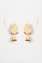 Featuring a pair of gold finish jhumka earrings studded with kundan polki and red beads, set in brass.