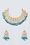 Featuring a gold finish necklace studded with kundan polki and sapphire stone, set in brass. It is paired with a matching pair of earrings.