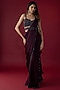 Aubergine Satin Cutdana Embroidered Pre-Stitched Ruffled Saree Set