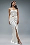 Featuring an ivory corset in satin base with pearl and rhinestone embroidery. It is paired with a draped skirt. Accentuate it with statement jewellery and heels for a cocktail look.