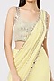 Featuring a lemon yellow sharara saree in raw silk and georgette base with mirror work. It is paired with a mirror work blouse. Accentuate it with statement jewellery and heels for a cocktail party or sangeet ceremony.